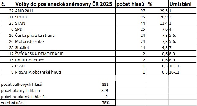 Výsledky voleb do poslanecké sněmovny ČR 2025 v Kostěnicích.